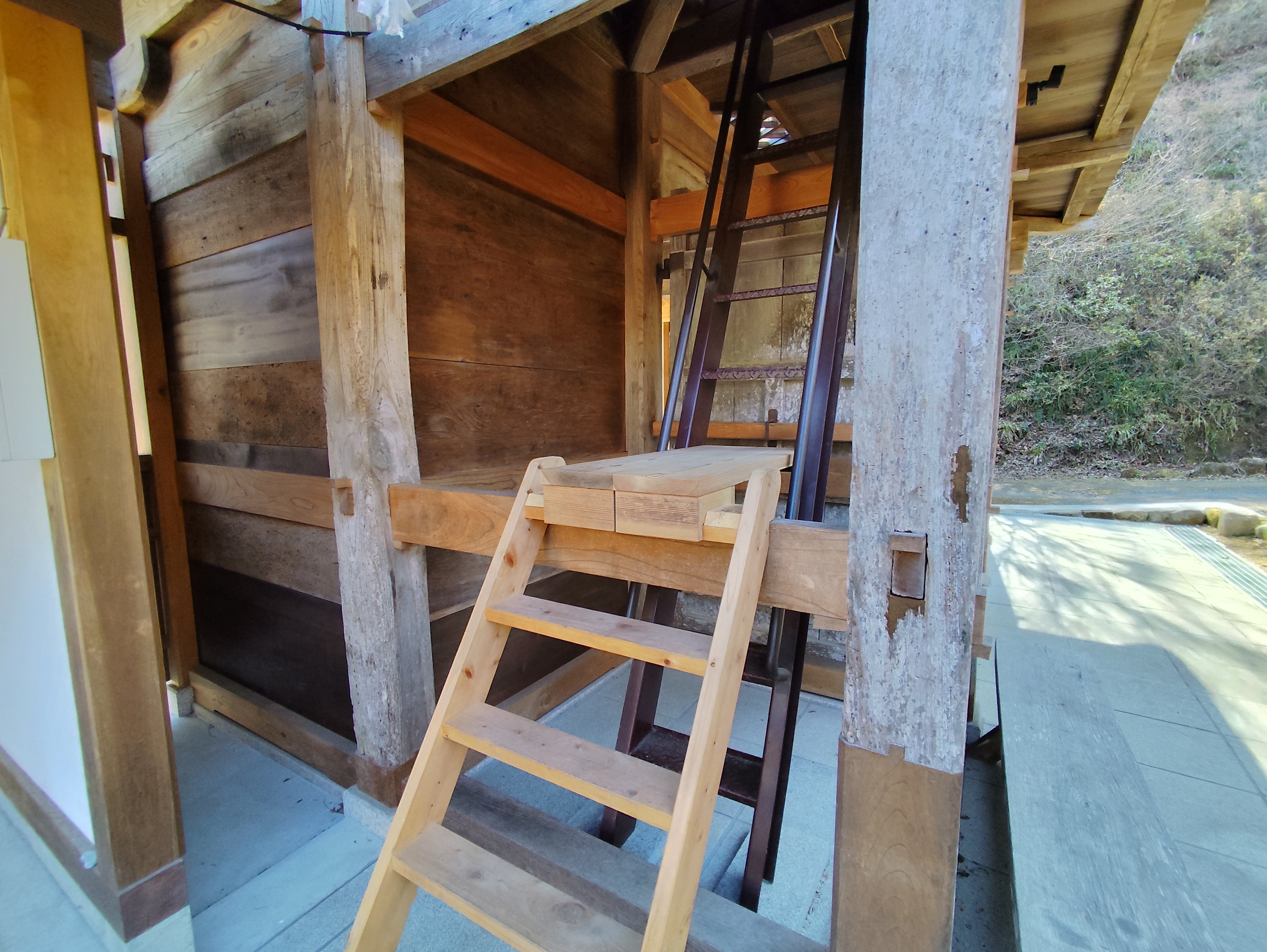 石段はワタシが上った感覚では70段くらいだと思うが、意外と急で多少デコボコしている。ワタシたちがお参りしたとき、同じように訪れていたお年寄りの方々は手すりにつかまりながら上り下りしていたし、ワタシも無理せずに手すりを使った。