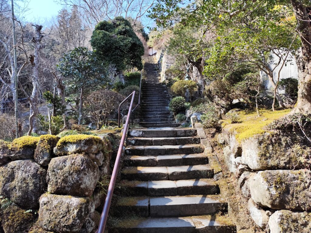 途中から石段になるが、このあたりの石段には手すりがないうえ、少々歩きづらいところもある。上り下りする際は、あまり急がずにゆっくりと歩いたほうが安全だ。