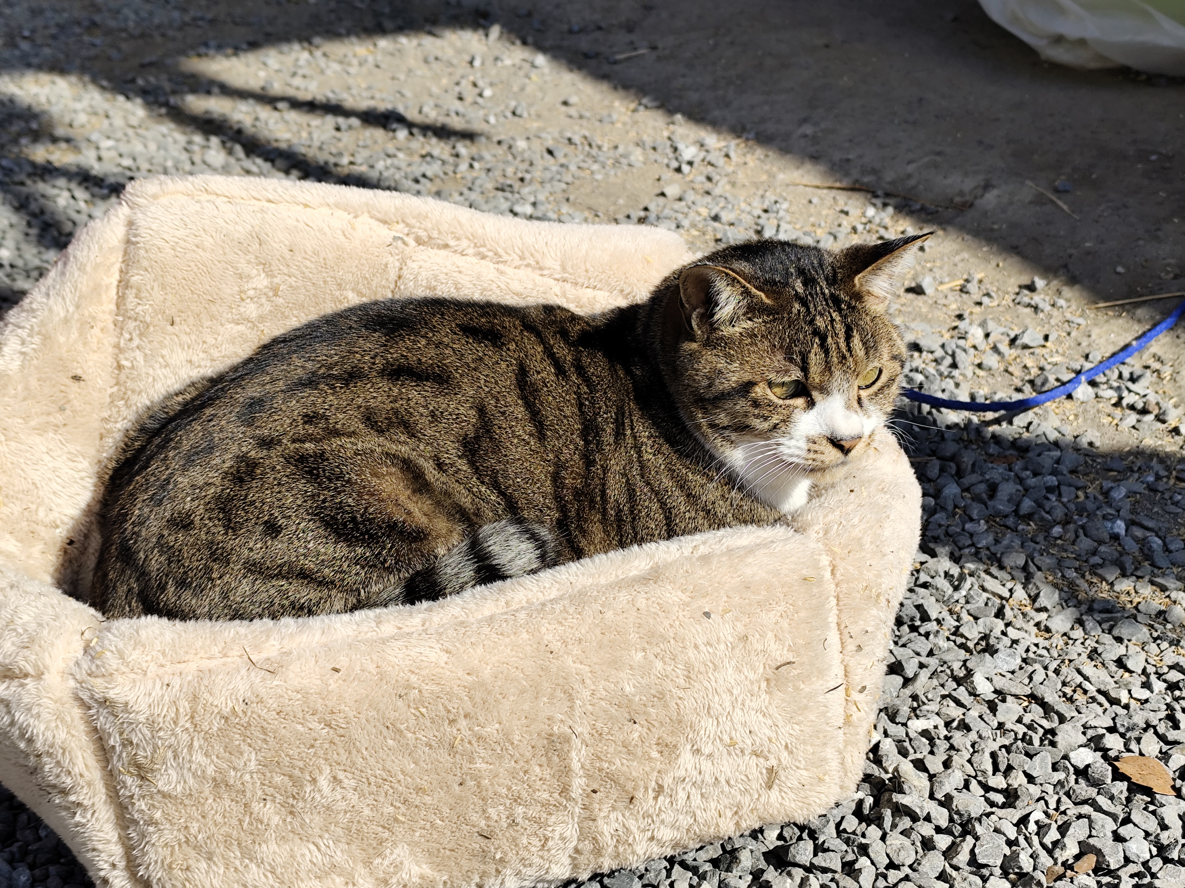 陽だまりでくつろぐキジ白。